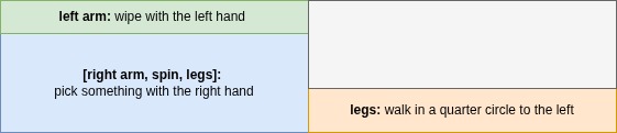 Generating motion for the upper body from frames 0 to 120 based on the “a person puts hands in the air.” For the lower body, motion is generated in two parts: From frames 0 to 60, based on the “a person kicks left legs.” From frames 60 to 120, based on the “a person jumps forward.”